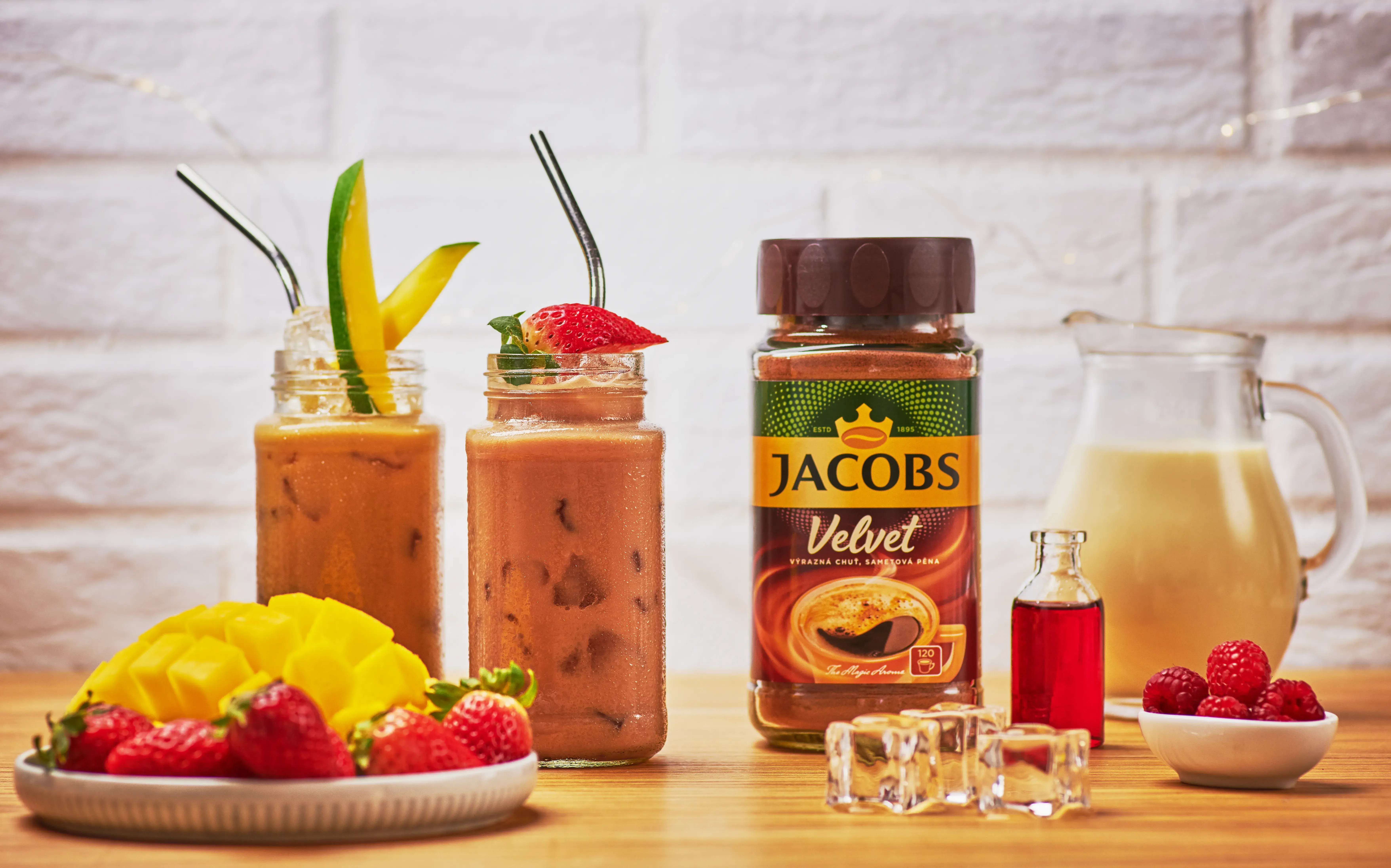 Potřebujete jen: 2 lžičky instantní kávy Jacobs Velvet; 200 ml (sójového) mléka; 2 cl ovocného sirupu (jahoda/malina/mango); led. Šejkr naplňte do poloviny ledem, přidejte dvě lžičky instantní kávy Jacobs Velvet, přilijte (sójové) mléko a ovocný sirup. Vše důkladně protřepejte. Nalijte spolu s ledem do sklenice a ozdobte kousky čerstvého ovoce a je to. Ekotip: Jako šejkr můžete klidně použít prázdnou sklenici od instantní kávy Jacobs a místo skleničky zase prázdnou sklenici menšího balení.