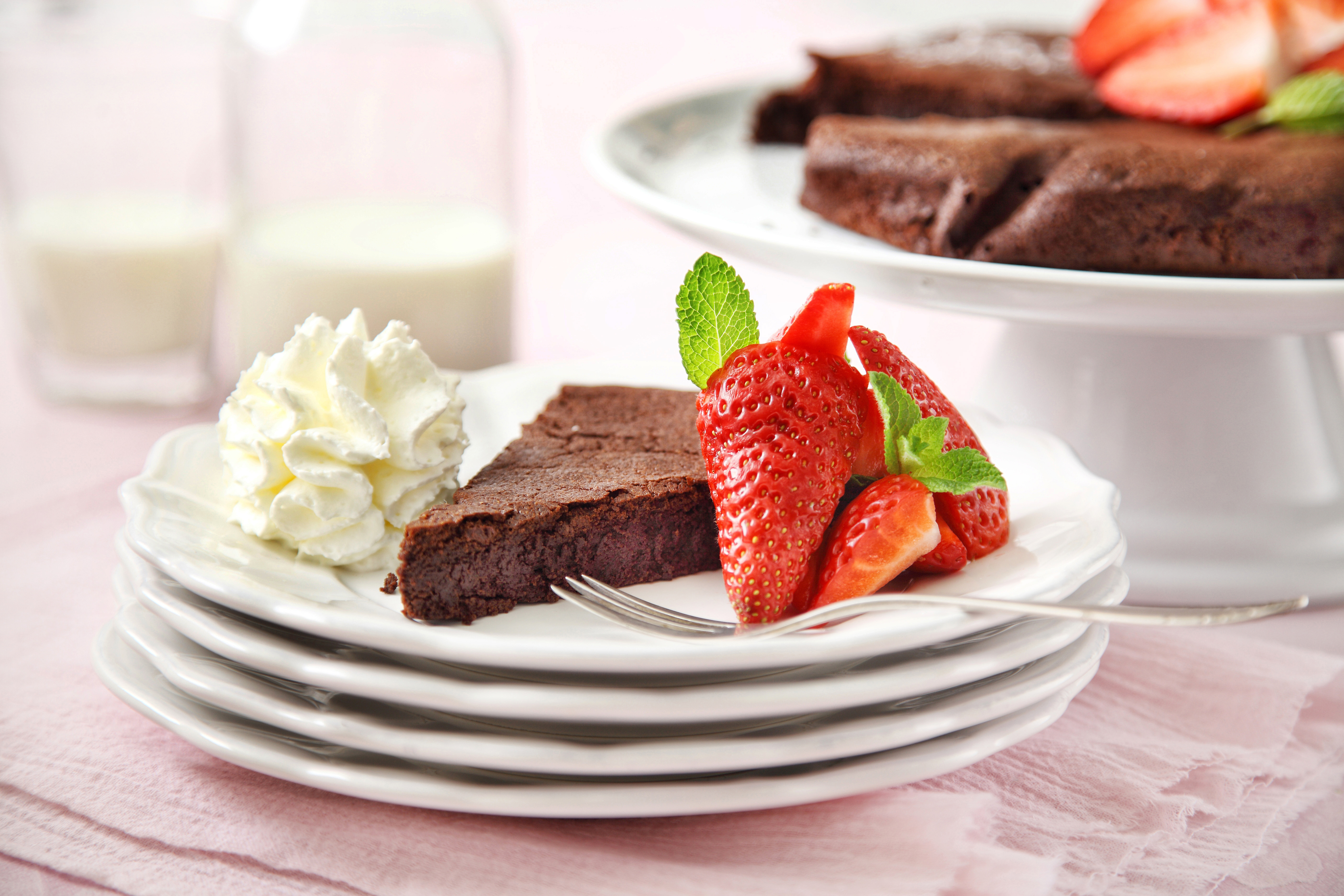 3 Hotový dort necháme zchladnout na pokojovou teplotu a pak dáme do lednice. Protože v něm není mouka, bude velmi jemný. Manipulujeme s ním tedy opatrně a krájíme jej, až když je opravdu dobře vychlazený. Jen tak to půjde snadno.