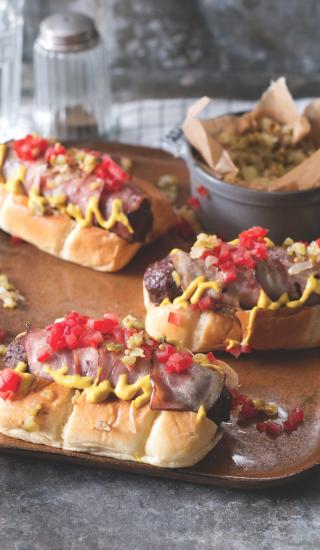 Hotdog jsme zkřížili s legendárním Reuben sendvičem – výsledkem je pocta newyorským bistrům. Párek v rohlíku doplněný o slaninu, kysané zelí, ementál a hořčici si nemůže nechat ujít žádný gurmán!
