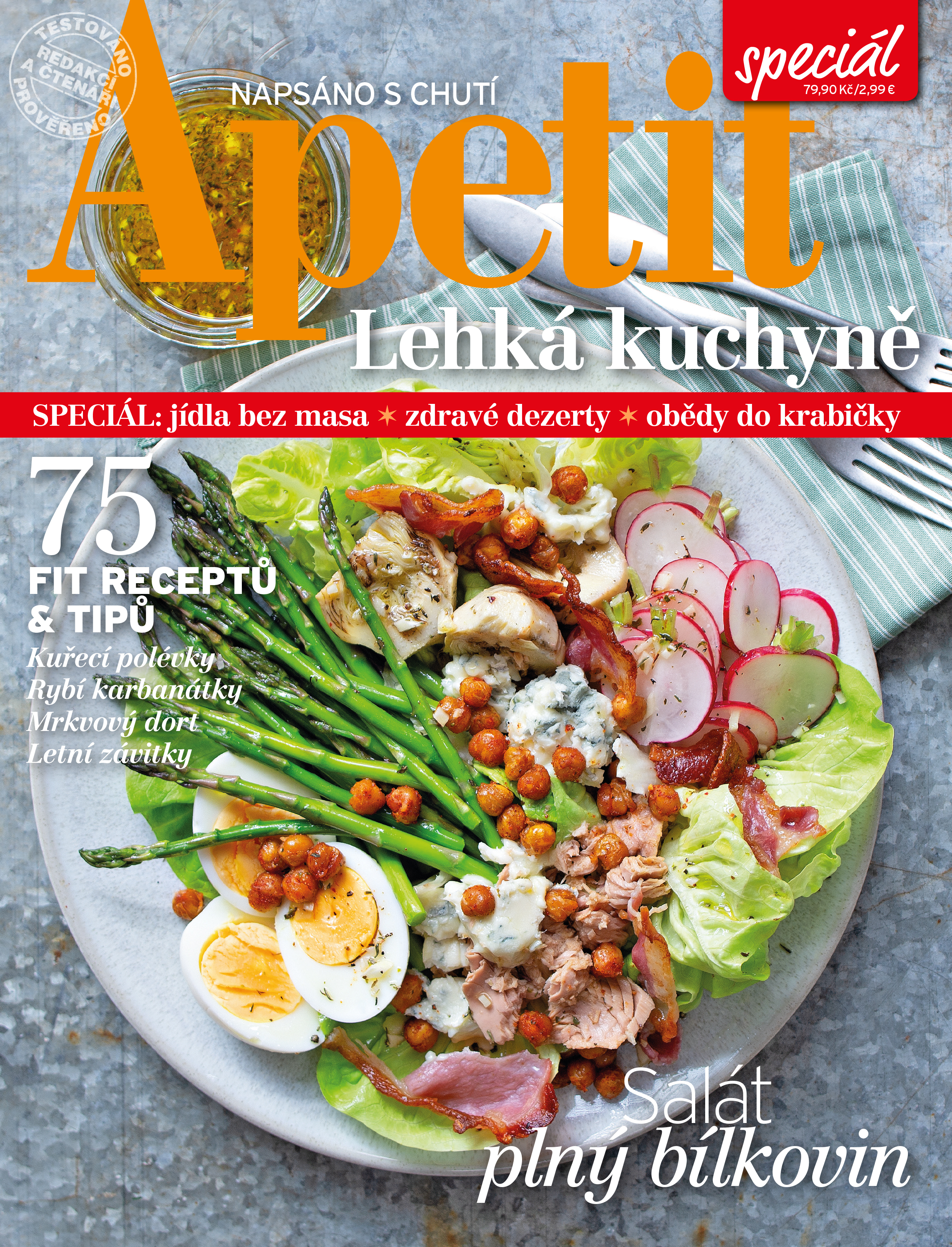Speciál Lehká kuchyně od Apetitu přináší inspiraci na vyvážená jídla pro dny, kdy chcete odlehčit jídelníček. Najdete v něm recepty na pokrmy bohaté na bílkoviny, saláty, které obstojí i jako hlavní chod, i zdravé obědy do krabičky.