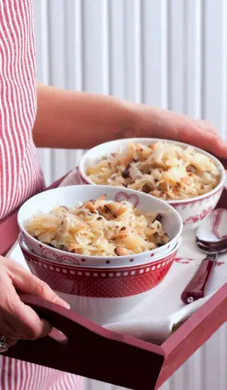 - Podávejte s dušeným kysaným zelím a dozlatova osmaženou cibulkou.