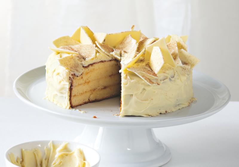 Ingredience na ganace a dokončení: 500 g bílé čokolády, 100 g smetany ke šlehání, mletá skořice na posypání