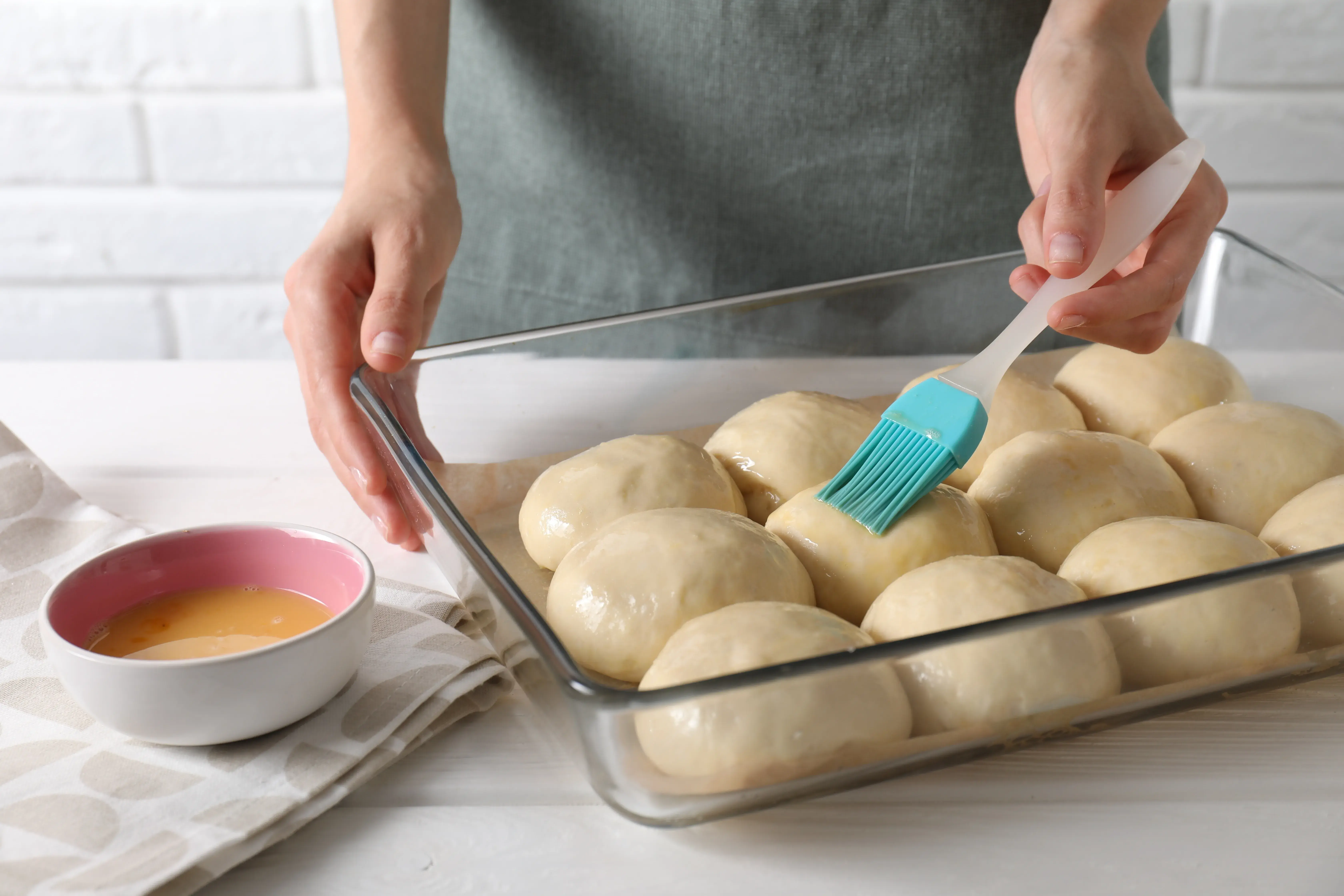 Směs na potírání volte pečlivě – na každé těsto se hodí jiná směs. Sladké pečivo si zaslouží žloutek nebo smetanu, zatímco slané těsto ocení máslo nebo mléko.
