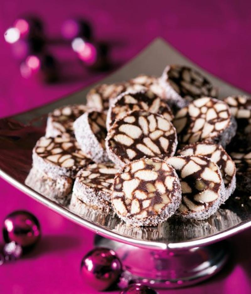 Čokoládový salám (někde se mu také říká čokoládová tlačenka) je tak oblíbenou součástí krabic s vánočním cukrovím, že by málokdo pochyboval o jeho českém původu. Ve skutečnosti však tato nepečená cukrovinka pochází z jihu Evropy – podobný dezert z rozdrobených sušenek, ořechů a čokoládové hmoty najdete například v Itálii nebo Portugalsku.