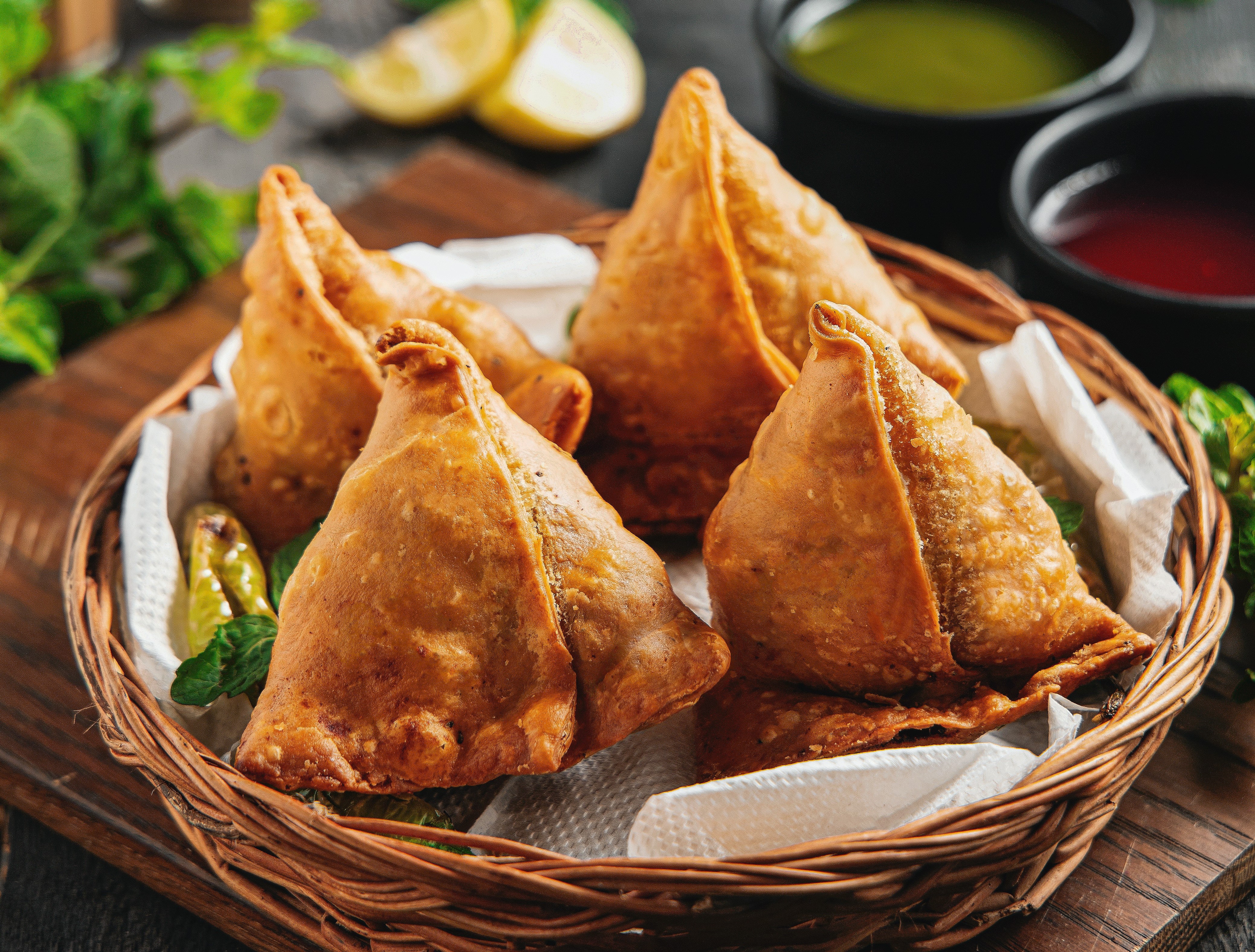 Samosa platí ze jednu z nejrozšířenějších svačin po celé Indii. Jedná se o tradiční pečené nebo smažené plněné pečivo trojúhelníkového tvaru, nejčastěji plněné směsí brambor, cibule a hrášku. Prý navozuje pocit štěstí!