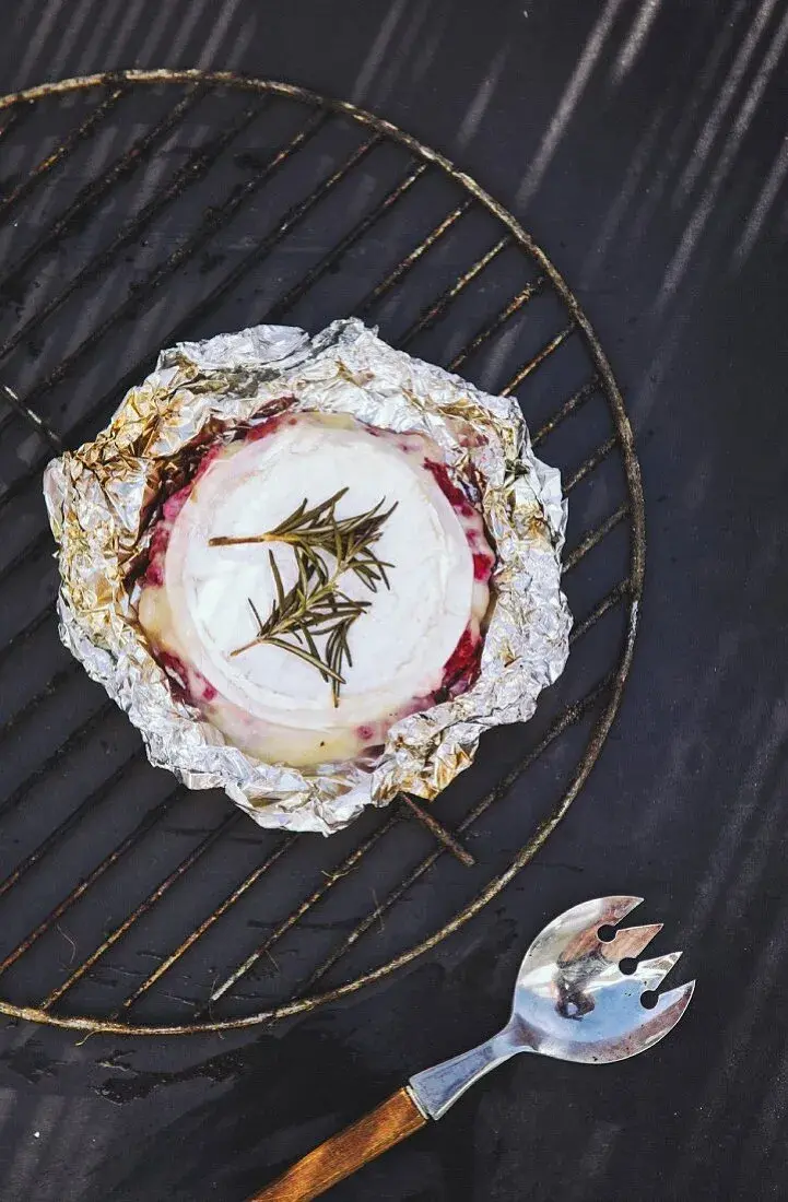 Sýr také můžete umístit do jakési alobalové mističky, která bude shora otevřená, a grilovat sýr v troubě shora. V takovém případě můžete kůrku sýra nakrojit a přidat na něj třeba brusinky.