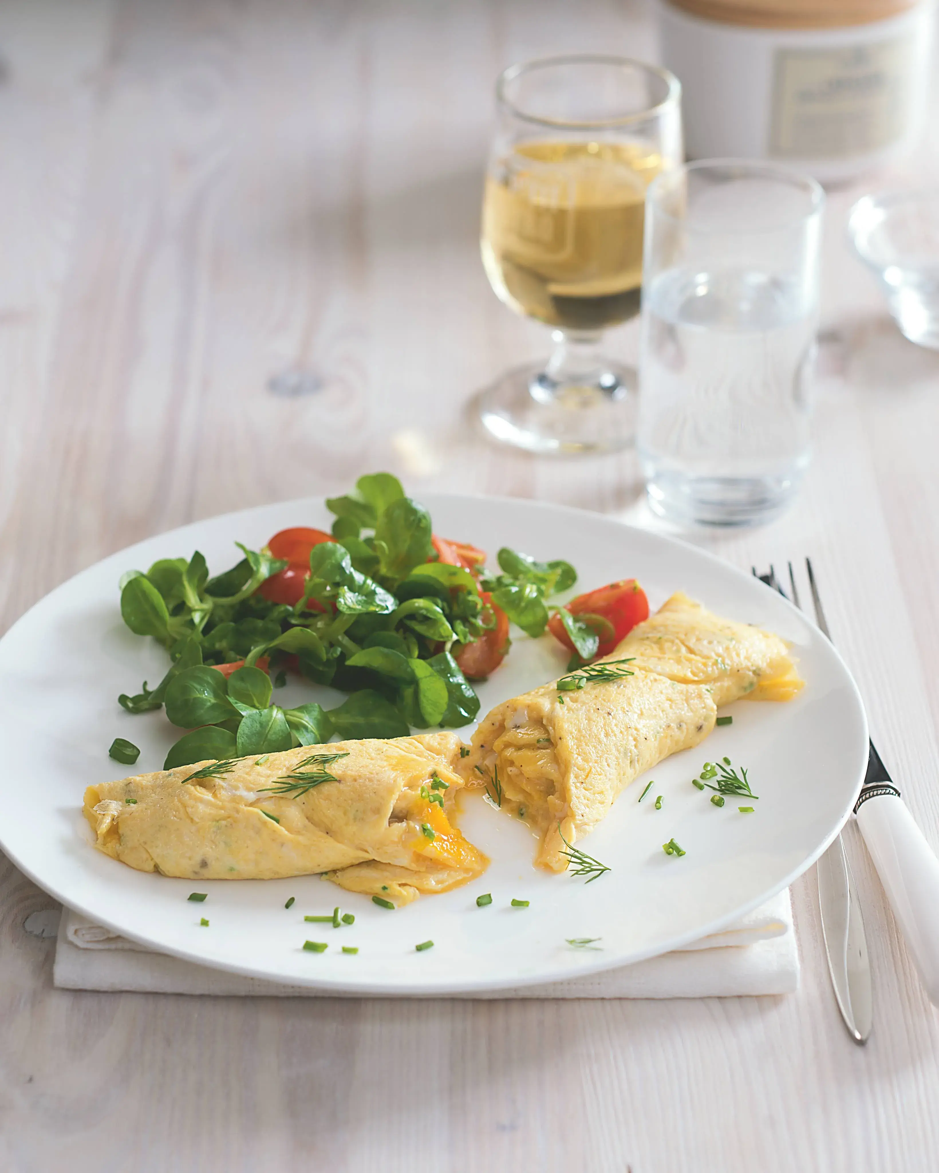 Nadýchaná vaječná omeleta je skvělá k snídani i jako lehký oběd – to když si ji dáte s náplní, se salátkem, křupavou francouzskou bagetkou a sklenkou bílého vína. Recept na vaječnou omeletu je jednoduchý, ale přesto máme pár tipů, jak na to, aby byla krásně nadýchaná a máslová.