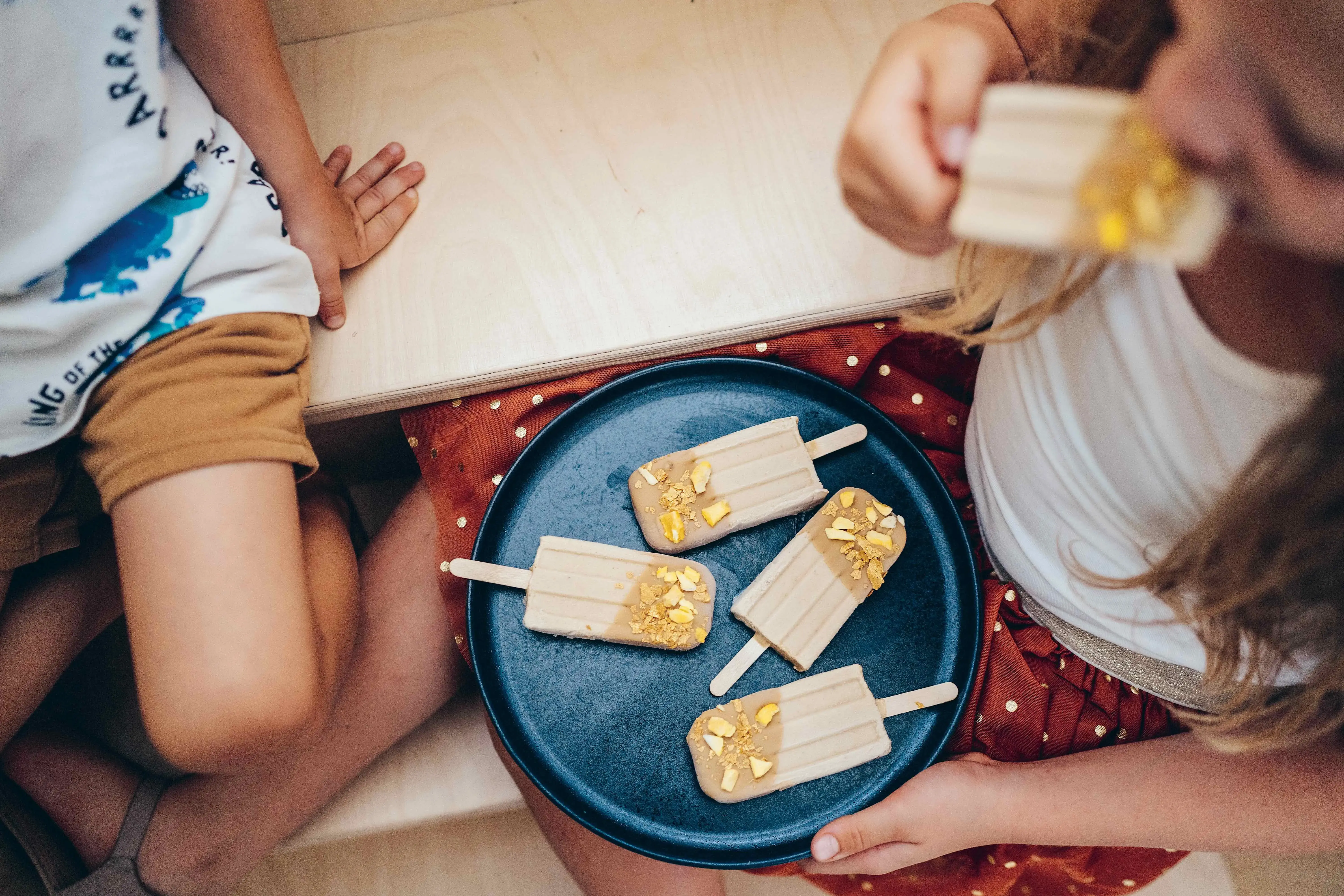 Hotové nanuky můžete polít čokoládou, a navíc posypat nejrůznějšími posypkami, ať už půjde o barevné dortové posypky, drcené ořechy nebo lyofilizované ovoce.