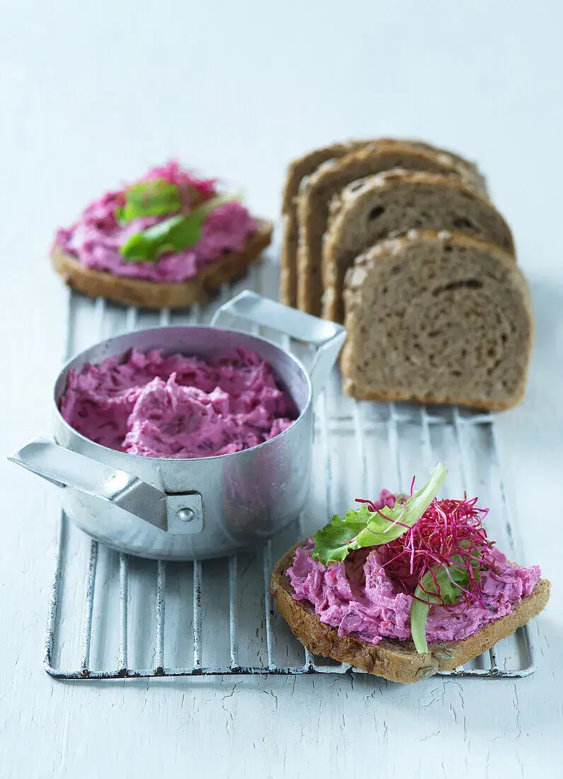 Syrovou červenou řepu můžete v pomazánkách také použít, je však třeba mít na paměti, že za syrova je tužší a má zemitější chuť. Jemně astrouhaná však krémové pomazánce dodá skvělou texturu i křupavost.