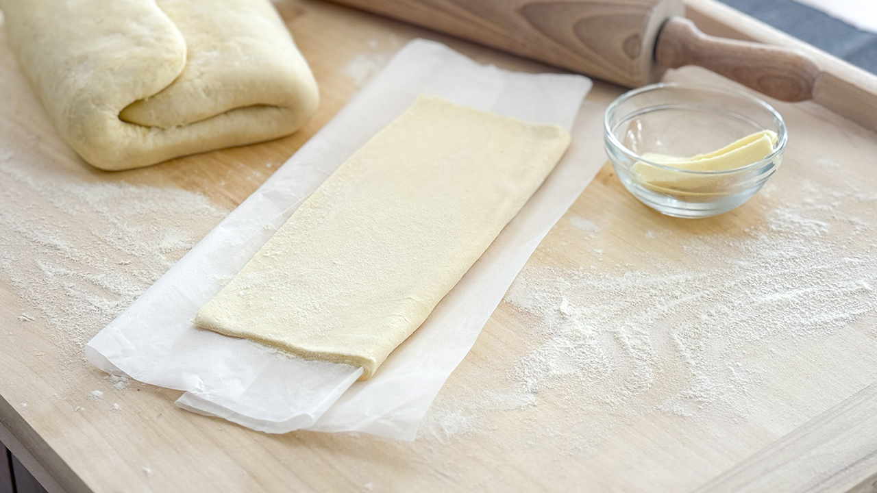 TIP: Podobně jako u slaných pokrmů platí, že těsto by mělo být při zpracování dobře vychlazené, aby se vrstvy během pečení správně oddělily a vznikla typická „listová“ struktura.