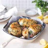 - Smažení: Obalte kapsy v trojobalu (mouka, vejce, strouhanka) a smažte dozlatova na pánvi. Tento způsob je vhodný například pro kuřecí kapsy plněné šunkou a sýrem.