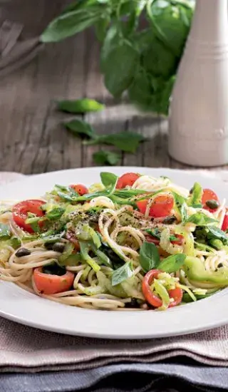 - Omáčka se napodává na talíř, ale promíchává se s těstovinami před podáváním přímo v pánvi.