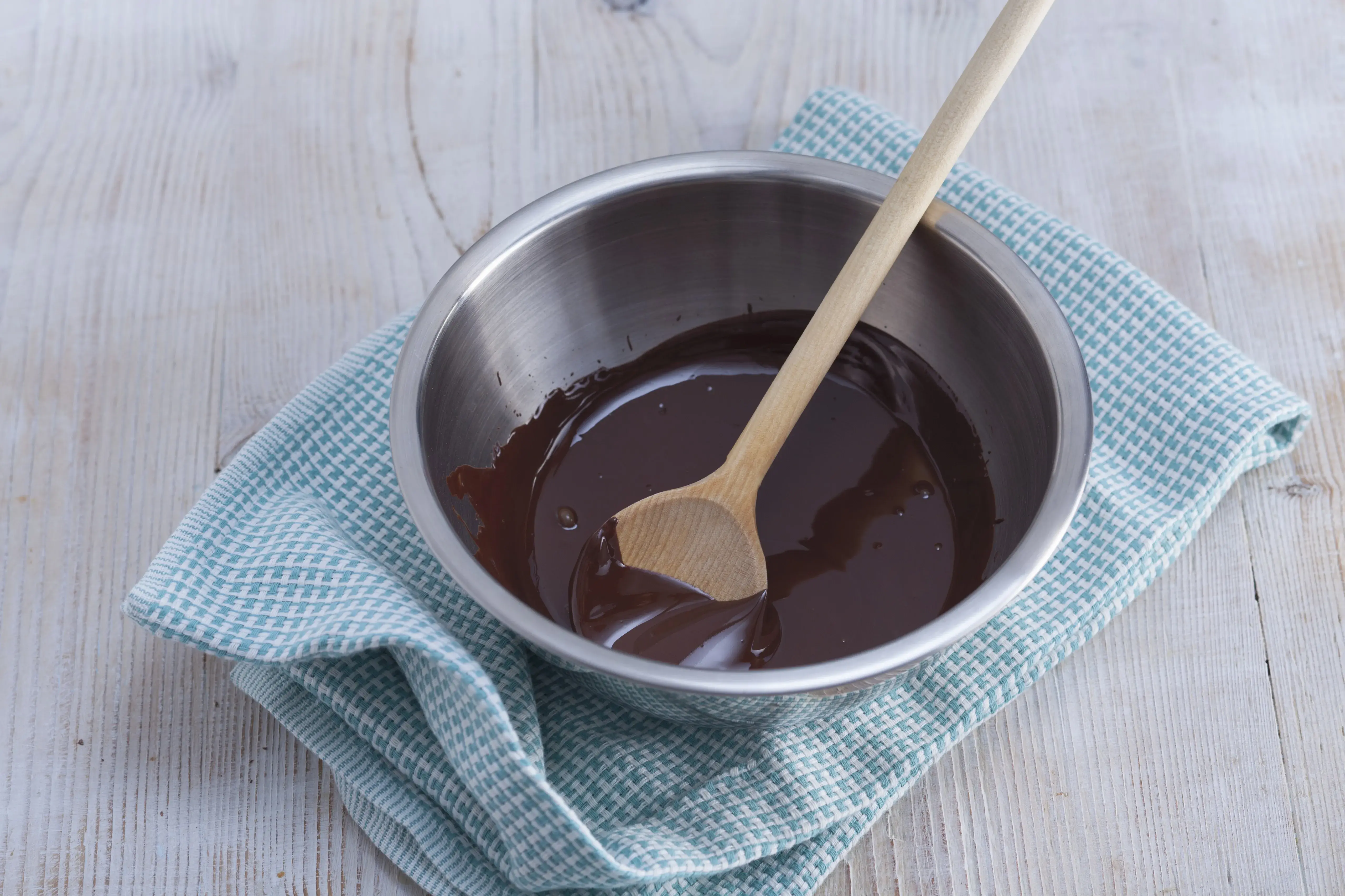 - Dokončení – mísu s hotovou směsí sundejte opatrně z hrnce tak, aby se voda nedostala dovnitř. Při práci s čokoládou nebo máslem je vhodné rozpuštěnou směs ihned použít, případně uchovat při pokojové teplotě.