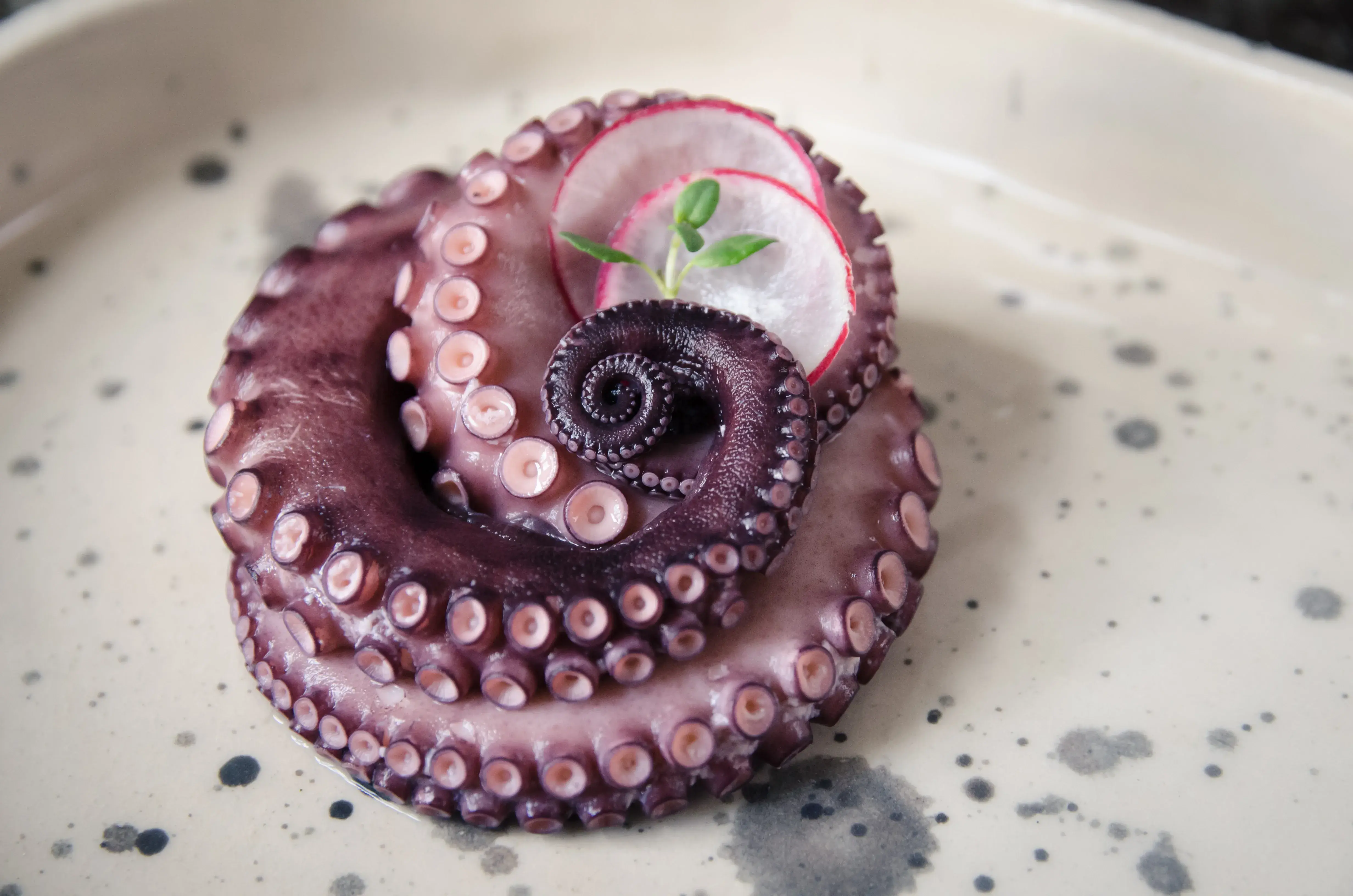 - Skvěle chobotnice chutná i na spařeném listovém špenátu ovoněném orestovaným česnekem.