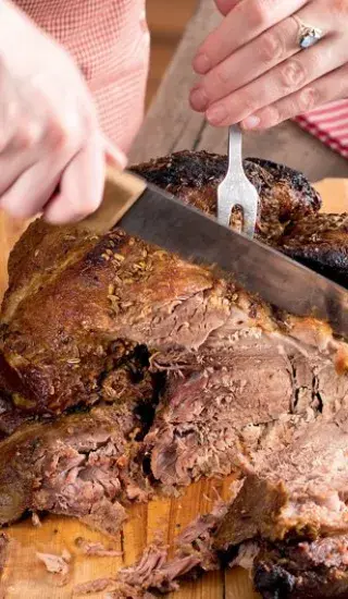 Propečení můžete zkontrolovat pohmatem – čím tužší maso bude, tím je propečenější. Pokud používáte teploměr, můžete si kontrolovat teplotu uvnitř masa. U vepřového byste se měli pohybovat v rozmezí 60 – 70 °C, spíše se však držte spodní hranice.