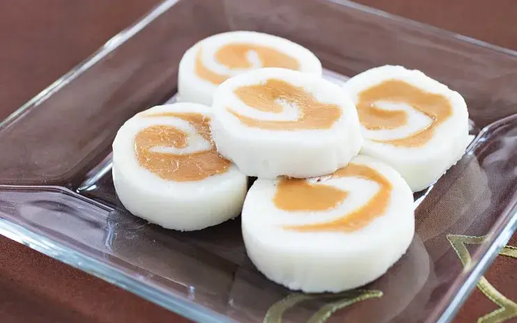 Vychlazené brambory rozmixujte s máslem na kaši, přidejte vanilkový extrakt a postupně do ní přimíchávejte moučkový cukr. Až vznikne hladké těsto, přendejte ho na pečící papír a rozválejte na zhruba 1 cm tlustou placku. Odřízněte kraje, potřete těsto arašídovým máslem a zarolujte jako roládu. Dejte ji na hodinu do lednice a pak nakrájejte na kolečka.