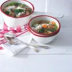 - Do polévky vložte malé růžičky květáku, všechny knedlíčky a vařte 5 minut.