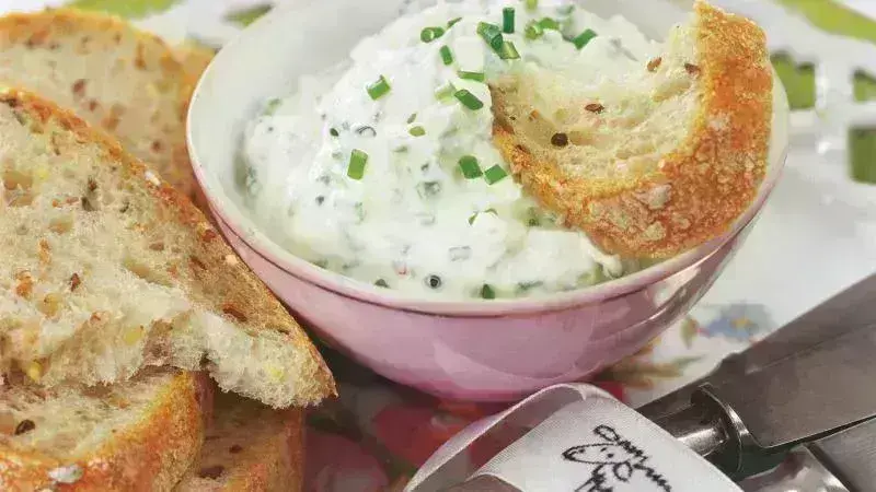 Ingredience pro 4 osoby: 150 g másla, 500 g měkkého tvarohu, 75 ml mléka nebo smetany, 1 oloupaná a najemno nakrájená cibule, 3 lžíce najemno nakrájené pažitky, sůl, mletý pepř, 1 lžička cukru