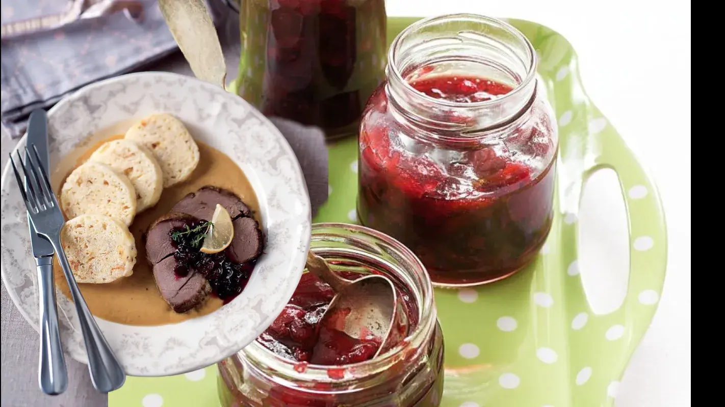 Brusinky dodávají svíčkové dokonalý sladkokyselý kontrast. Jak zařídit, abyste je měli vždy po ruce? Vyzkoušejte zavařit červený rybíz jako brusinky. Je daleko dostupnější a brusinkám se podobá. Přípravu skleniček s rybízem a la brusinkami ke svíčkové navíc zvládnete i jen tak mezi řečí.