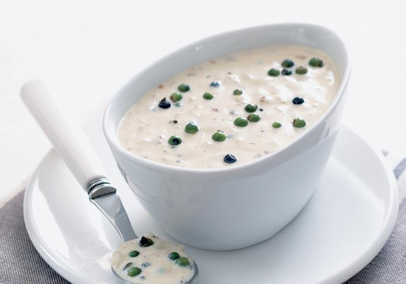 - Zrníčka pepře jsou viditelná a dodávají omáčce její typický vzhled.