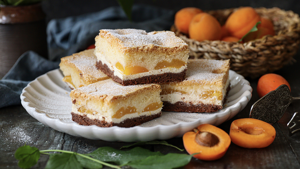 Jak připravit tříbarevný koláč s tvarohem a meruňkami