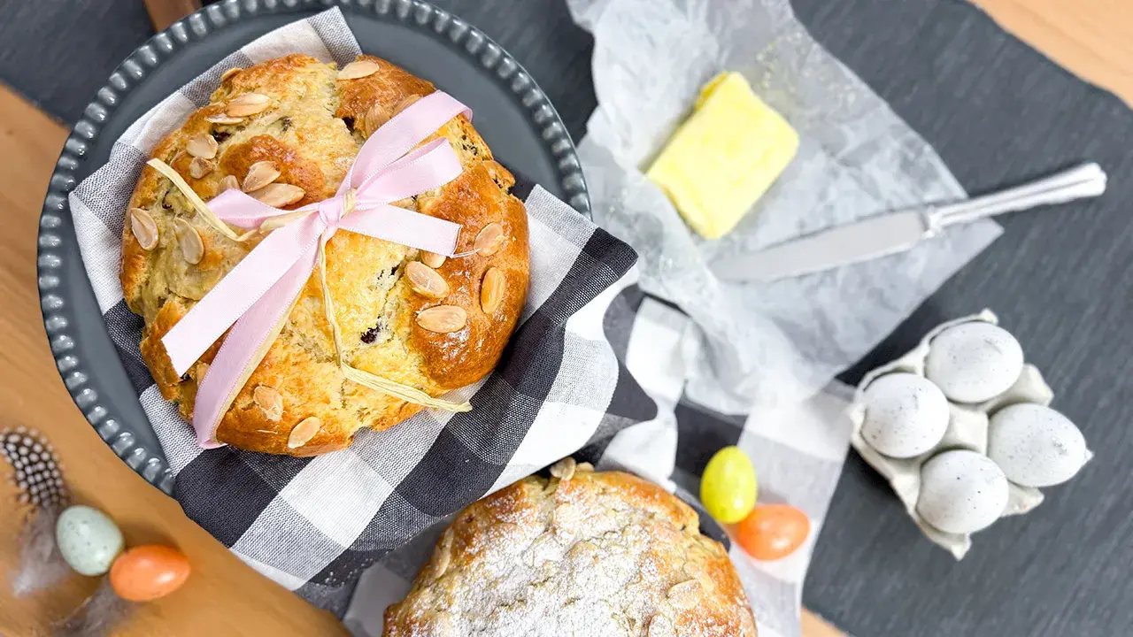 Tvarohový mazanec je skvělou volbou pro všechny, kdo si netroufají na kynuté těsto, případně na pečení nemají před Velikonocemi dost času. Jeho příprava je rychlá, výsledek ale rozhodně nezklame – díky tvarohu je těsto krásně vláčné, přitom nadýchané a delikátní. Po rozkrojení vás mazanec navíc potěší nejen jemnou strukturou, ale i pestrou mozaikou z rozinek a nasekaných mandlí, která každému plátku dodá slavnostní nádech.