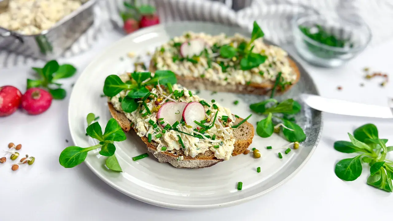 S tuňákem: Přidejte k vajíčkům konzervovaného tuňáka ve vlastní šťávě, který pomazánku krásně dochutí a dodá další dávku bílkovin. Skvěle se hodí i pár kapek citronové šťávy.
