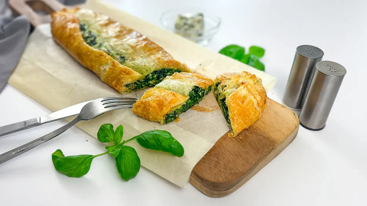Pokud toužíte po rychlé, ale působivé chuťovce, pak je slaný závin se špenátem a nivou sázkou na jistotu. Křupavé listové těsto v sobě ukrývá krémovou náplň s výraznou chutí modrého sýra a jemnou texturou dušeného špenátu. Tato úprava závinu je vhodná na piknik, lehkou večeři i jako pohoštění pro hosty – chutná skvěle teplý i studený.