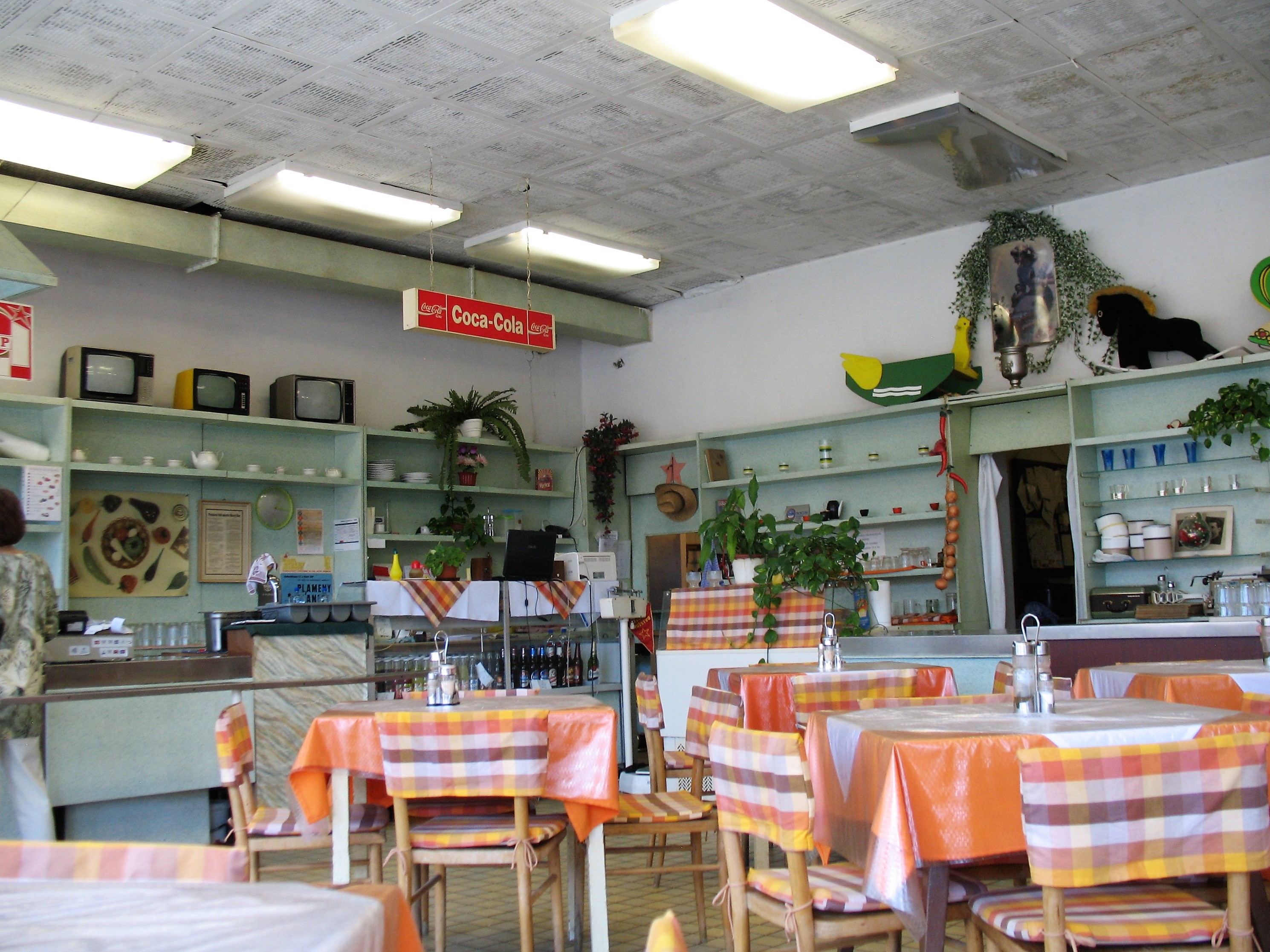 I když interiér evokuje dobu před rokem 1989, kuchyně tu funguje na jedničku. Místo řídkých omáček a mdlých příloh se tu servíruje poctivá svíčková, kuře à la bažant, smažená krkovice s bramborovou kaší nebo kovbojské fazole. Každý den je v nabídce i jedno vegetariánské jídlo a něco sladkého pro milovníky dezertů.