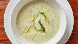 - Podávejte se zvlášť uvařenými špičkami chřestu a opečenou houskou na másle. Hezké je mít pár hlaviček zeleného chřestu – ty vkládejte do polévky jako vložku. Můžete pokapat olivovým olejem ze zeleného chřestu.