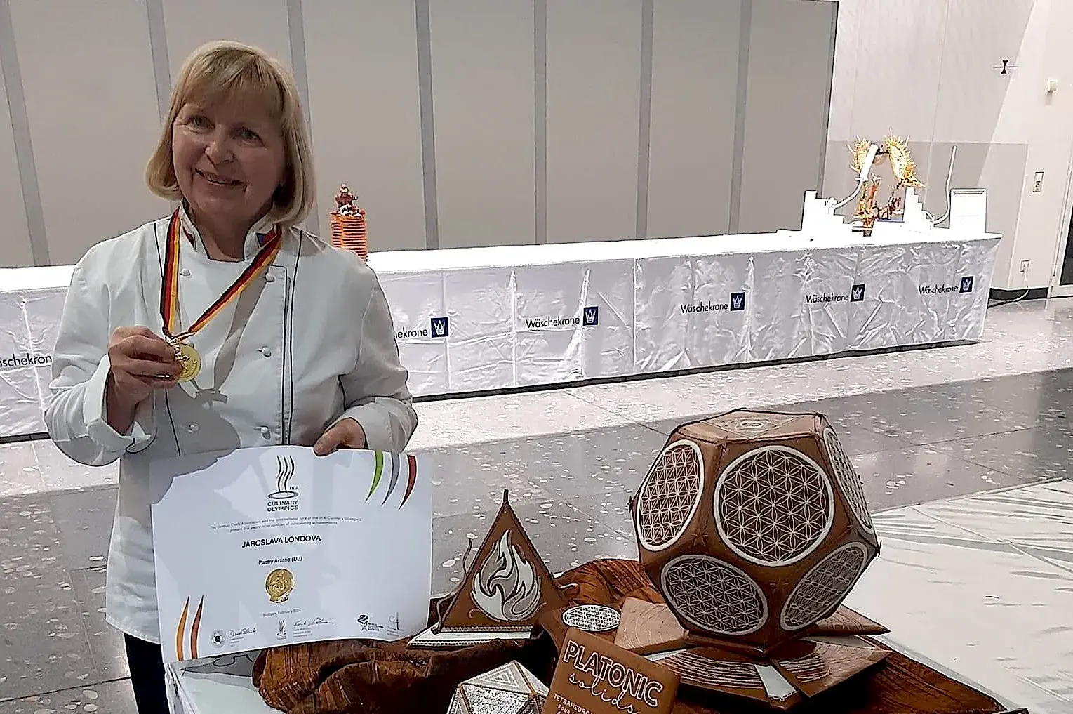 Jaroslava Londová soutěžila v disciplíně Pastry Artistic se svými jemně zdobenými perníčky, které připravila v různých složitých několikastěnných geometrických tvarech. Bílkovou polevou na ně malovala drobné krajky, některé perníky zdobil strom, jiné oheň. Porota ocenila zlatem především dokonale symetrickou práci jemného zdobení.