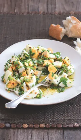 • Turecká vejce můžete posypat bylinkami, skvěle se k nim hodí třeba koriandr, máta nebo kopr. Na jaře pak můžete využít třeba česnek podivný, medvědí česnek nebo další jarní bylinky rostoucí ve volné přírodě.