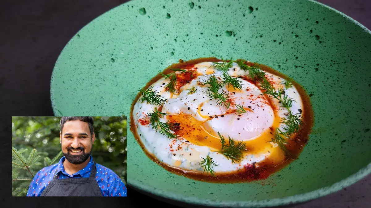 Turecká vejce s oříškovým máslem a koprem podle Pavla Berkyho