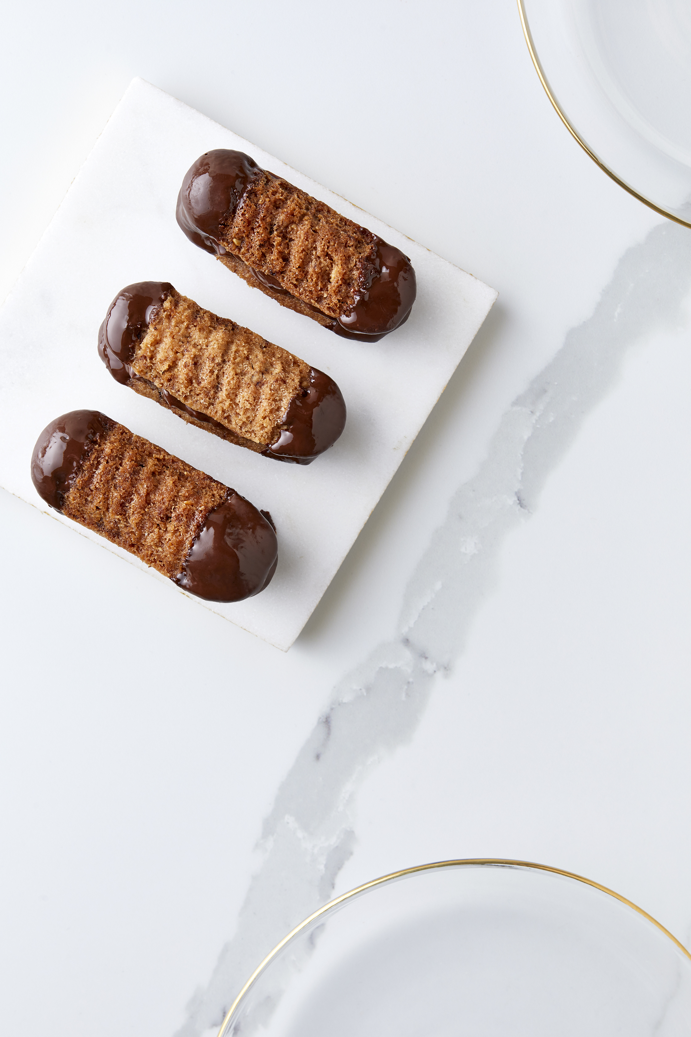 - Hotový krém přeložte do cukrářského sáčku s ozdobnou špičkou a naplňte jím polovinu rohlíčků. Následně přiklopte druhou nenaplněnou polovinou. Dejte do lednice vychladit a kraje rohlíčků poté namočte do připravené polevy.