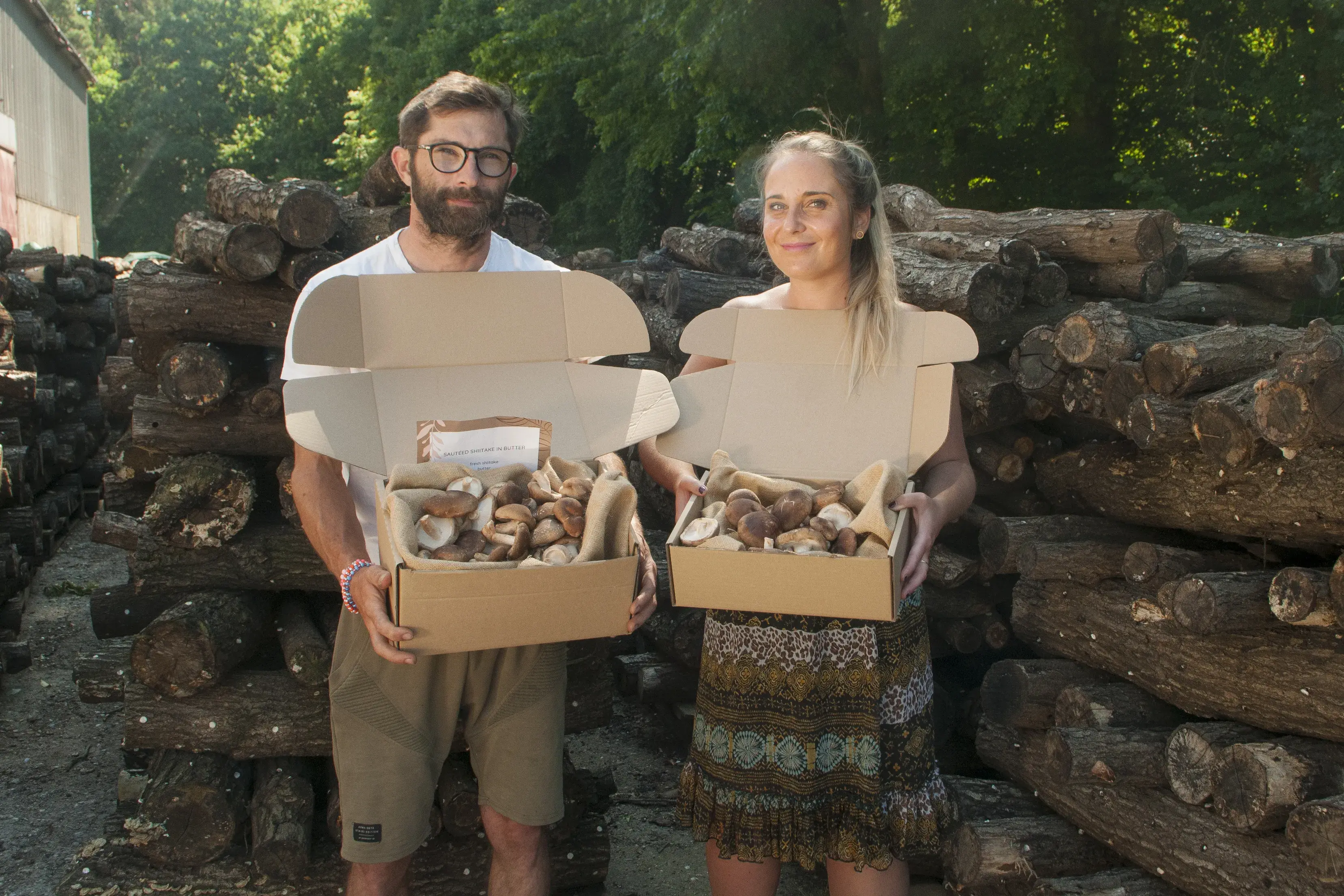 Divoké houby, které rostou z dubového dřeva a jsou pěstované ryze přírodní metodou, což je hlavní rozdíl a výhoda oproti substrátům. Ten vstup přírody je to, co je na našich shiitake houbách unikátní. Rostou totiž přímo z palivového dřeva, které získáváme z prořezávek. Běžně se dřevo ihned spálí a spotřebuje se tak jen 10 % jeho energie. My ale na něm před spálením pěstujeme čtyři roky houby a využijeme ho tak komplet.