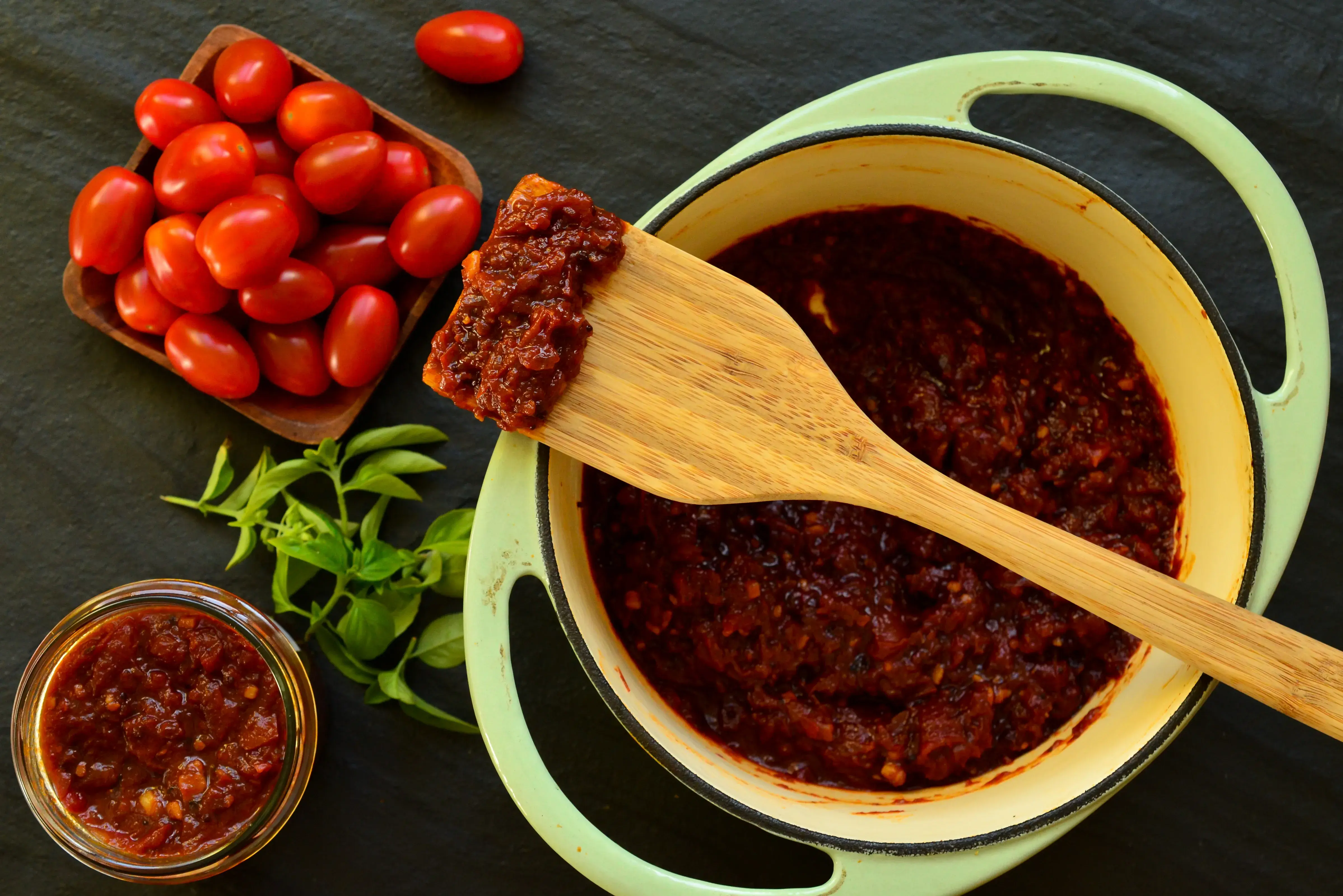 „Z kila a půl budete mít slušné dvě skleničky, redukování trvá podle šťavnatosti rajčat a teploty na plotně hodinu až… no, hodin několik," říká food blogerka Nuselská kuchta a doplňuje, že tenhle džem je ideální způsob, jak se zbavit nadúrody nebo uvadajících plodů, kterých je na kečup málo a do těstovin moc.