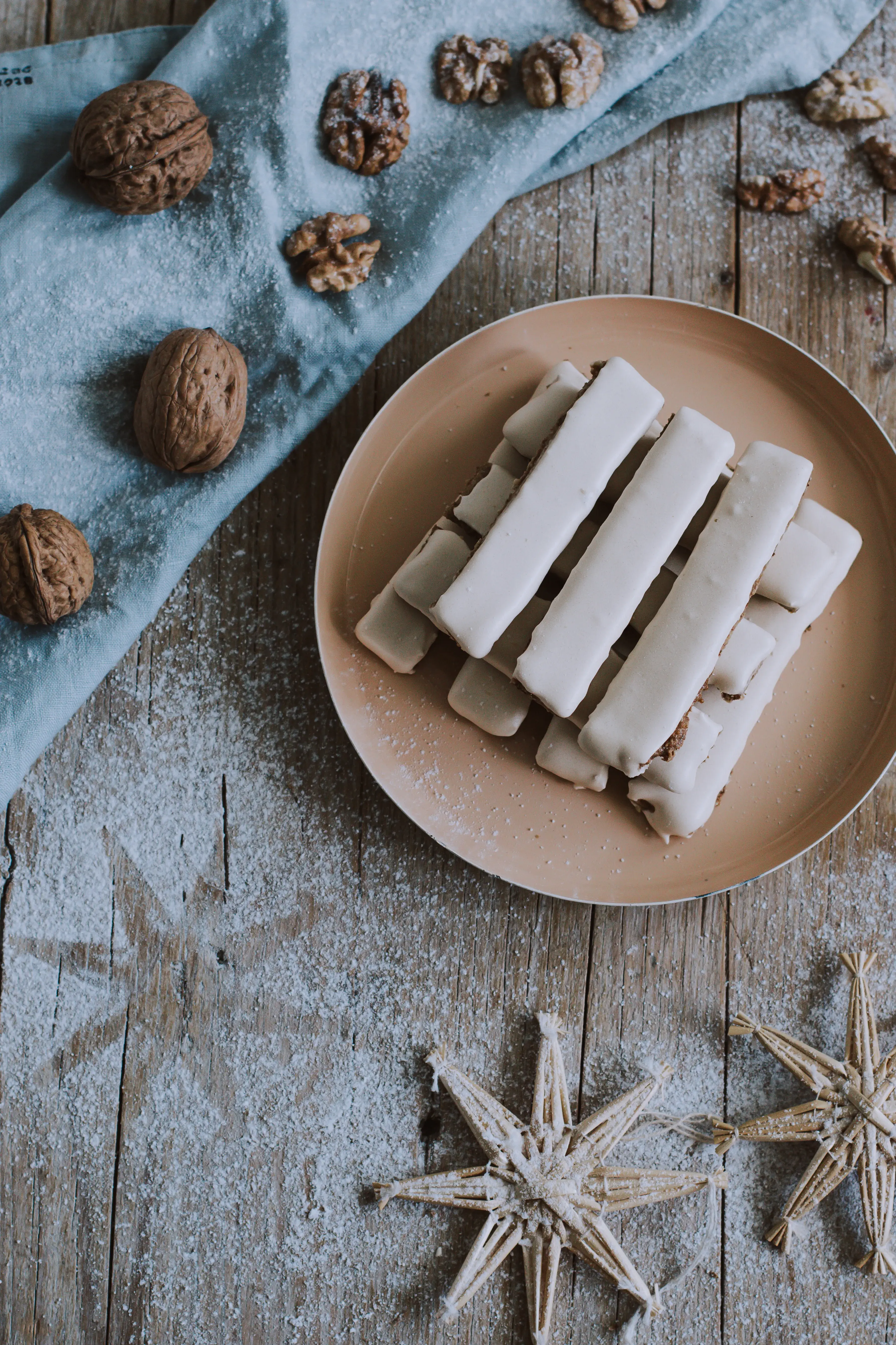 Podobné recepty na tyčinky z jednoduchého křupavého ořechového těsta zdobené lesklou bílkovou polevou najdete téměř ve všech starších kuchařkách. Jejich příprava je opravdu rychlá, to je ale jenom příjemný bonus – nejdůležitější je, že chutnají skvěle a vypadají tak dobře, že se na míse s cukrovím rozhodně nemusí stydět.