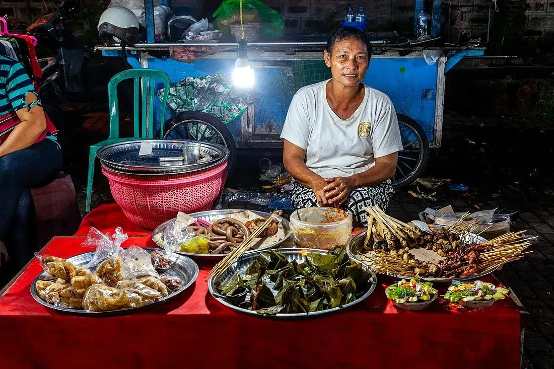 - Když jsem na Bali během studií žila, nejčastěji jsem se stravovala na ulici. Ta skýtá nepřeberné možnosti stravování od malých pojízdných vozíků s polévkou bakso (vývar s masovými kuličkami), soto ayam (kuřecí vývar s rýžovými nudlemi a vejcem) nebo s nasi kuning (žlutá rýže) přes warungy, kde si můžete sednout a dostanete na výběr z několika jídel, až po klasické restaurace se širokou nabídkou menu.