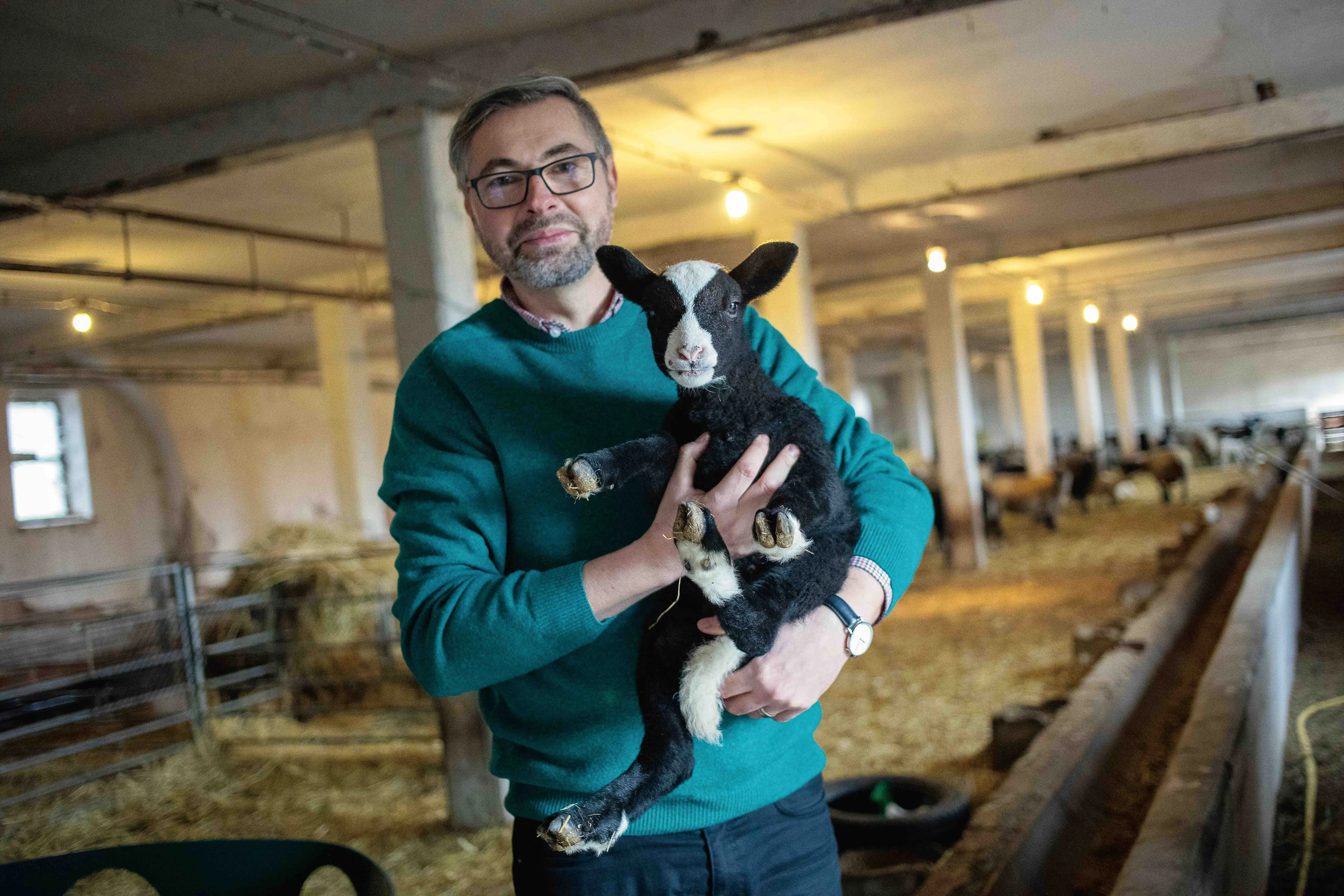 Z jedné ze stodol, sloužící k ustájení zvířat, se ozývá bečení a Petr Musil nás s fotografem pouští dovnitř. Jde o ovčinec, jakousi porodnici pro jehňata. Tady tráví ovce čas zhruba od Vánoc do března. V lednu se rodí mláďátka, která mohou ven ve chvíli, kdy na pastvě konečně povyroste tráva, tedy zhruba ve třech měsících.