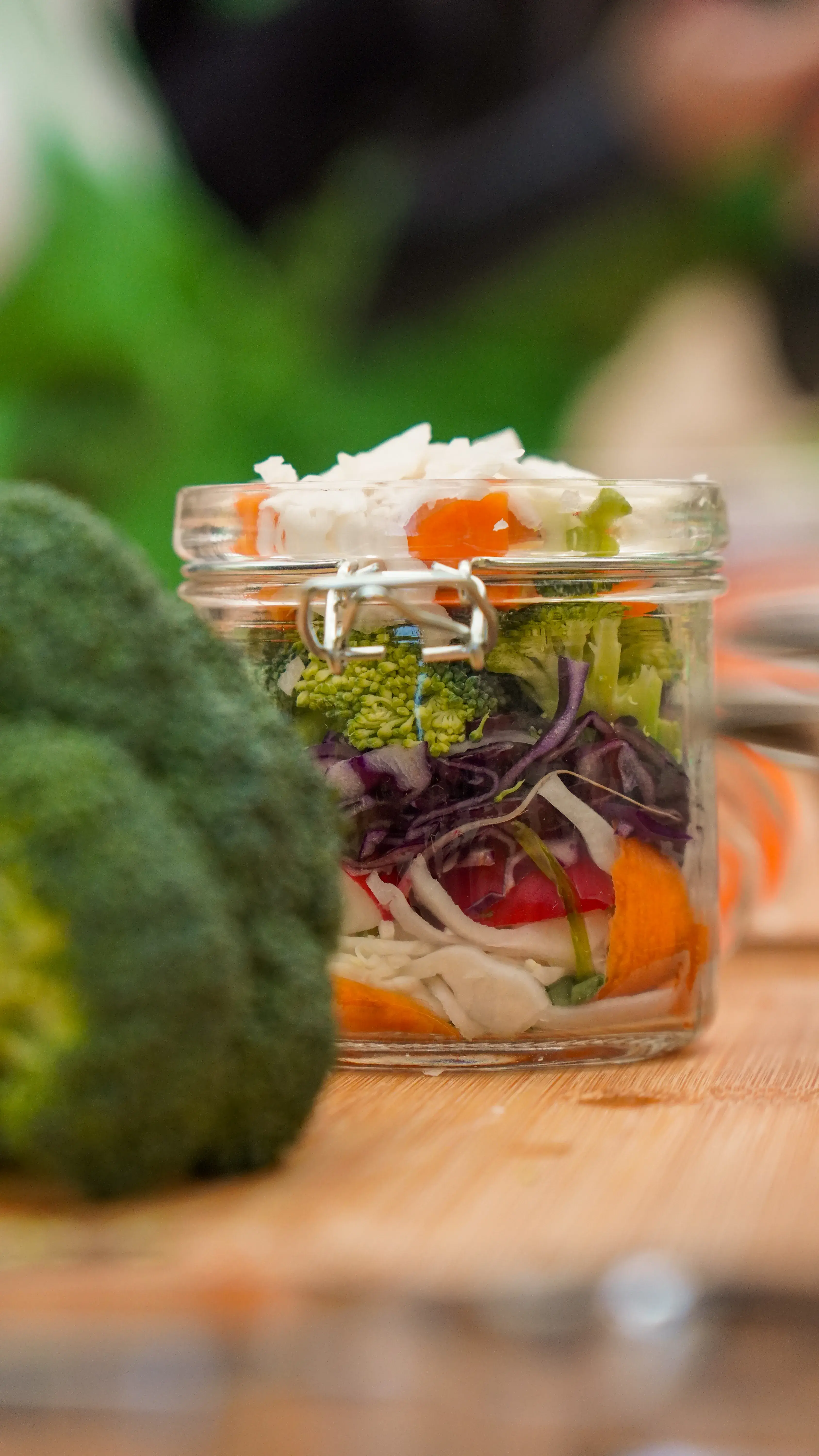- Každý dostal sklenici a možnost vytvořit si vlastní fermentovanou směs. Na výběr byly ředkvičky, mrkev, brokolice a zelí.