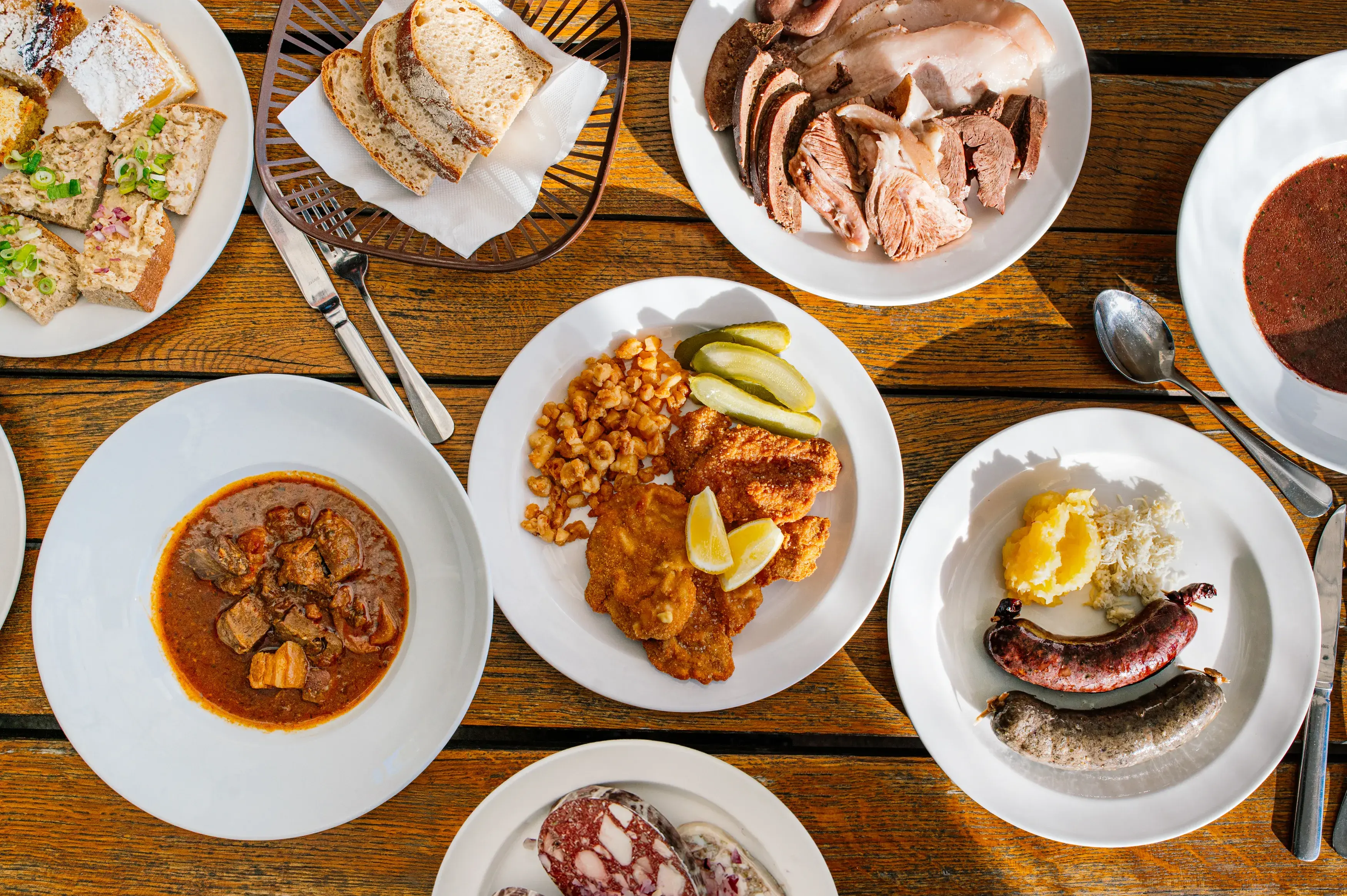 - Zabijačkový guláš: Guláš, ve kterém najdete snad všechno, tj. plecko, bůček, krkovici, ořezy i vnitřnosti. Právě tahle směs tvoří jedinečnou chuť guláše, jaký si dáte jen na zabijačce. Přílohu můžete zvolit stejnou jako ke klasickému. Někdo sáhne po knedlíku, jiný si vystačí s chlebem.