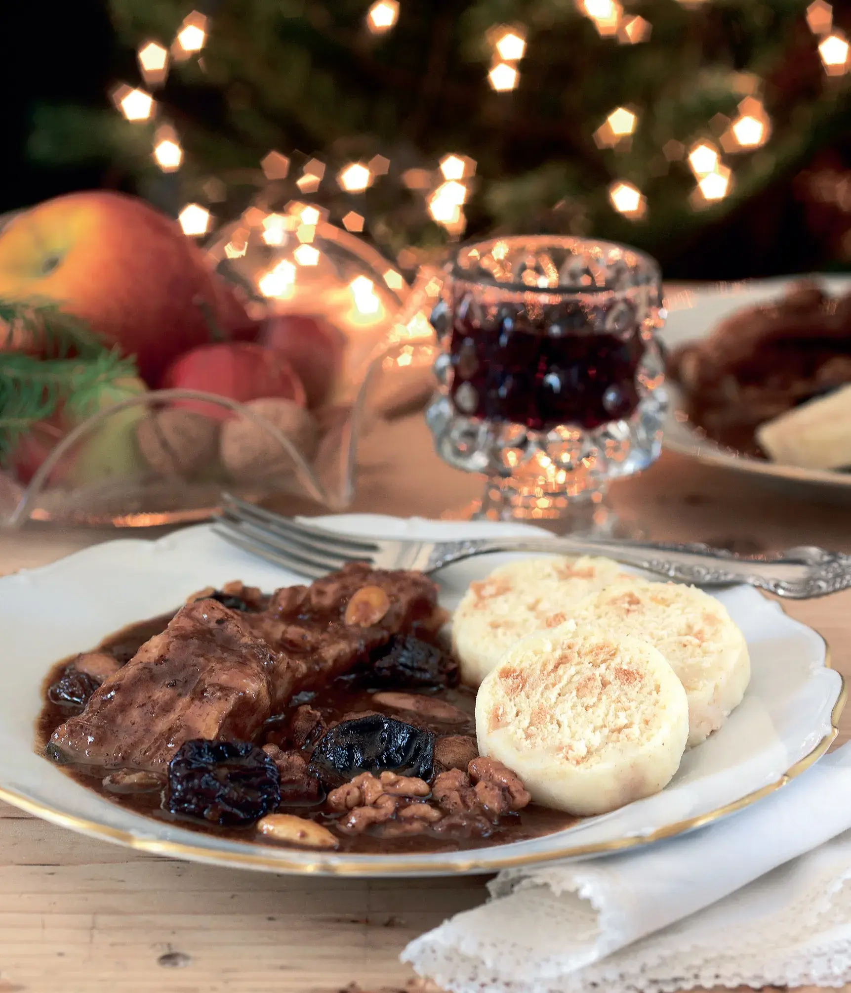 - Černá omáčka z vína, perníku a sušeného ovoce sluší i jemnému králičímu masu, které je dokonalou alternativou slavnostního jídla, pokud se rybám zcela vyhýbáte.