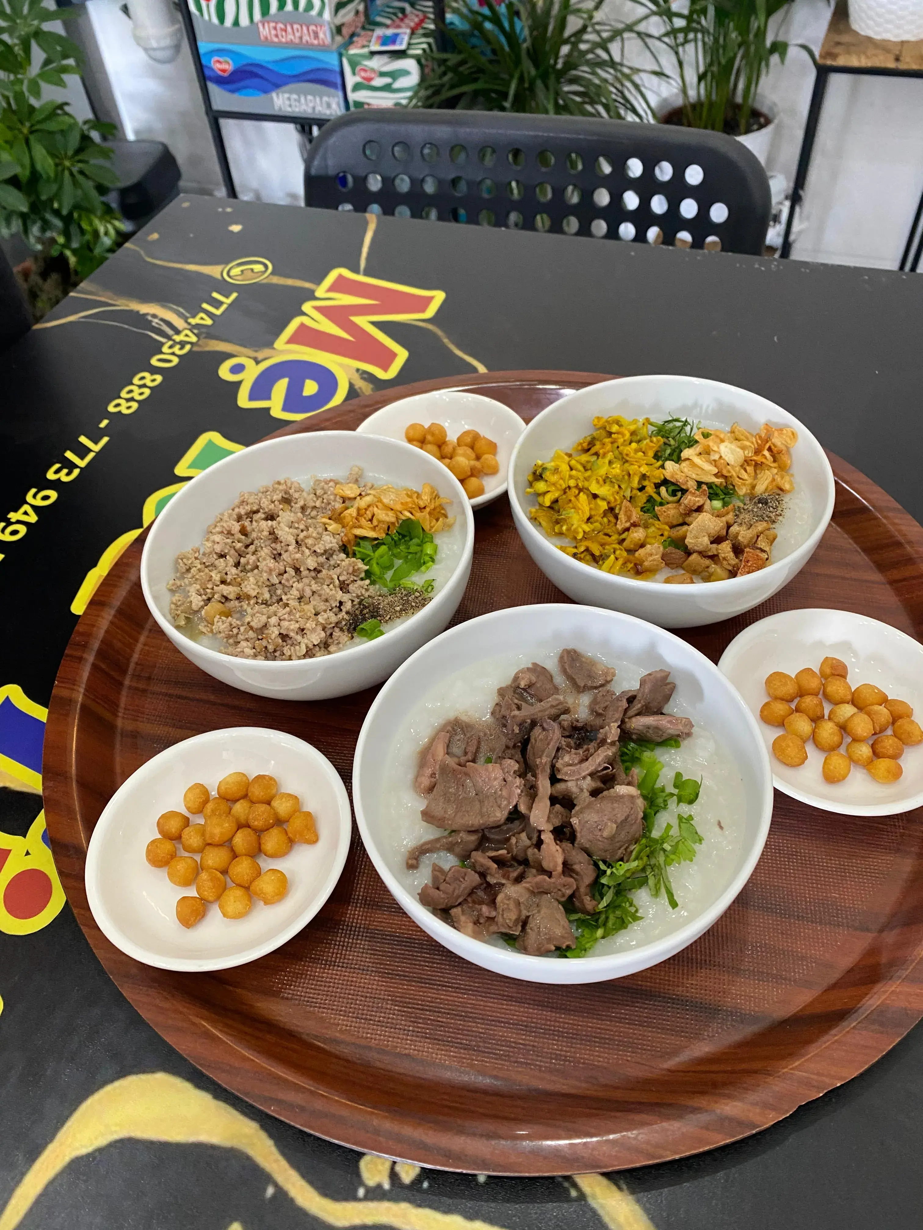 Byla to láska na první ochutnání: z misky se kouřilo, vývar s trhaným kuřecím masem byl silný a zahuštěný rozvařenou rýží, který dodávala pocit sytosti i blaženosti. Chuťově pak porci dotáhla k dokonalosti křupavá osmažená cibulka, chilli olej a nasekaný koriandr.