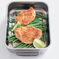 Pečená kuřecí prsa s batáty – jídlo z jednoho plechu, které snadno doplní jednoduchý dip ze zakysané smetany nebo jen vše na závěr zakápněte čerstvým bylinkovým pestem.