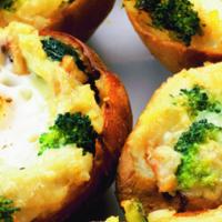 Klasika se sýrem a slaninou: Vydlabanou dužinu smíchejte s máslem, strouhaným čedarem a opečenou slaninou. Směs můžete dochutit jarní cibulkou nebo pažitkou.