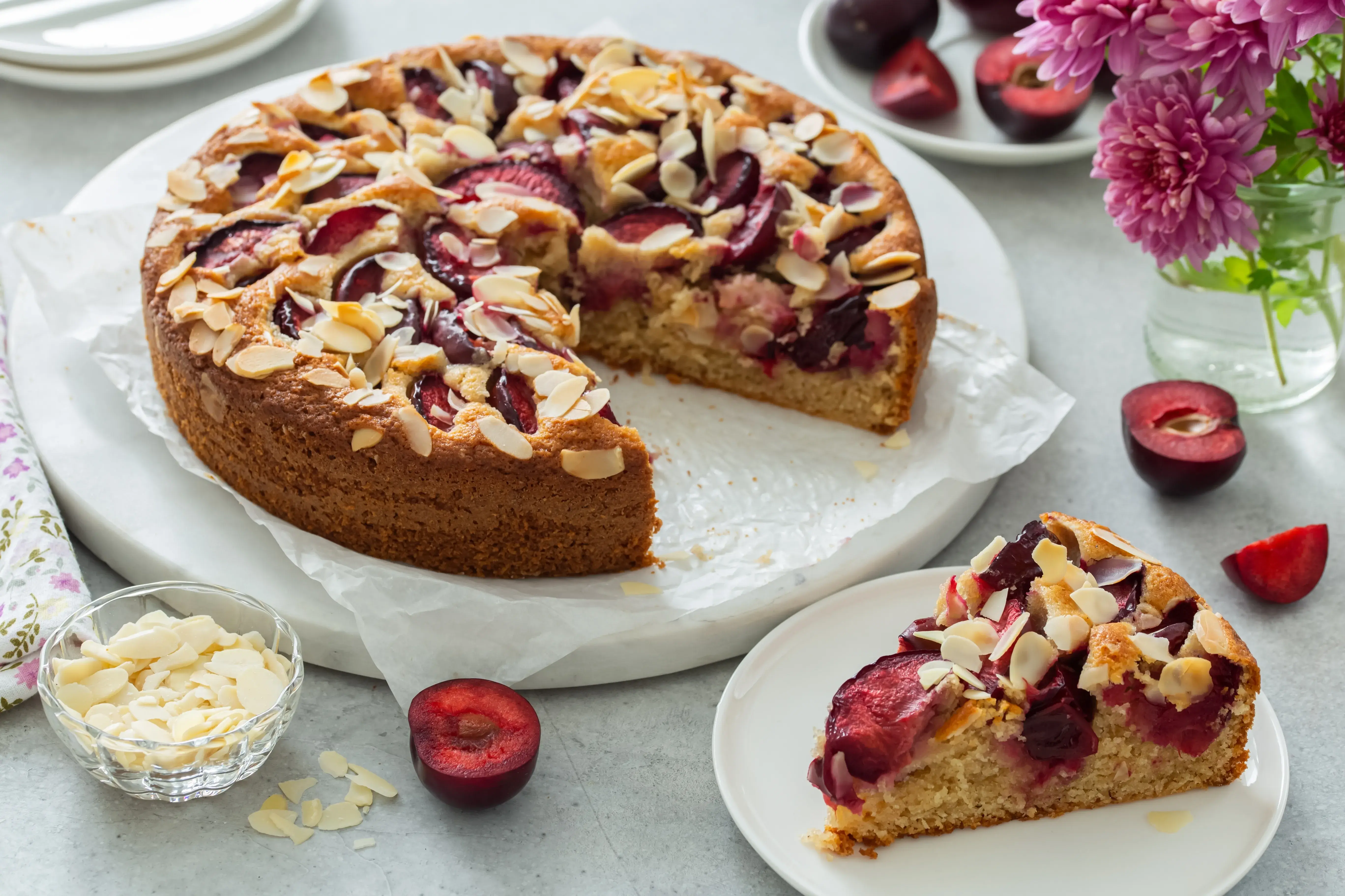 - Švestkový koláč s marcipánem a mandlemi: Spojení švestek, marcipánu a mandlí vytváří dezert s bohatou chutí a jemnou texturou. Tento koláč je vhodný pro slavnostní příležitosti i k odpolednímu mlsání třeba na terase.