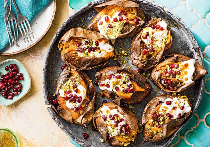 - Další variantou je batáty péct vcelku a po změknutí je zčásti vydlabat a naplnit například směsí krémového a tvrdého sýra s bylinkami či zakysanou smetanou.