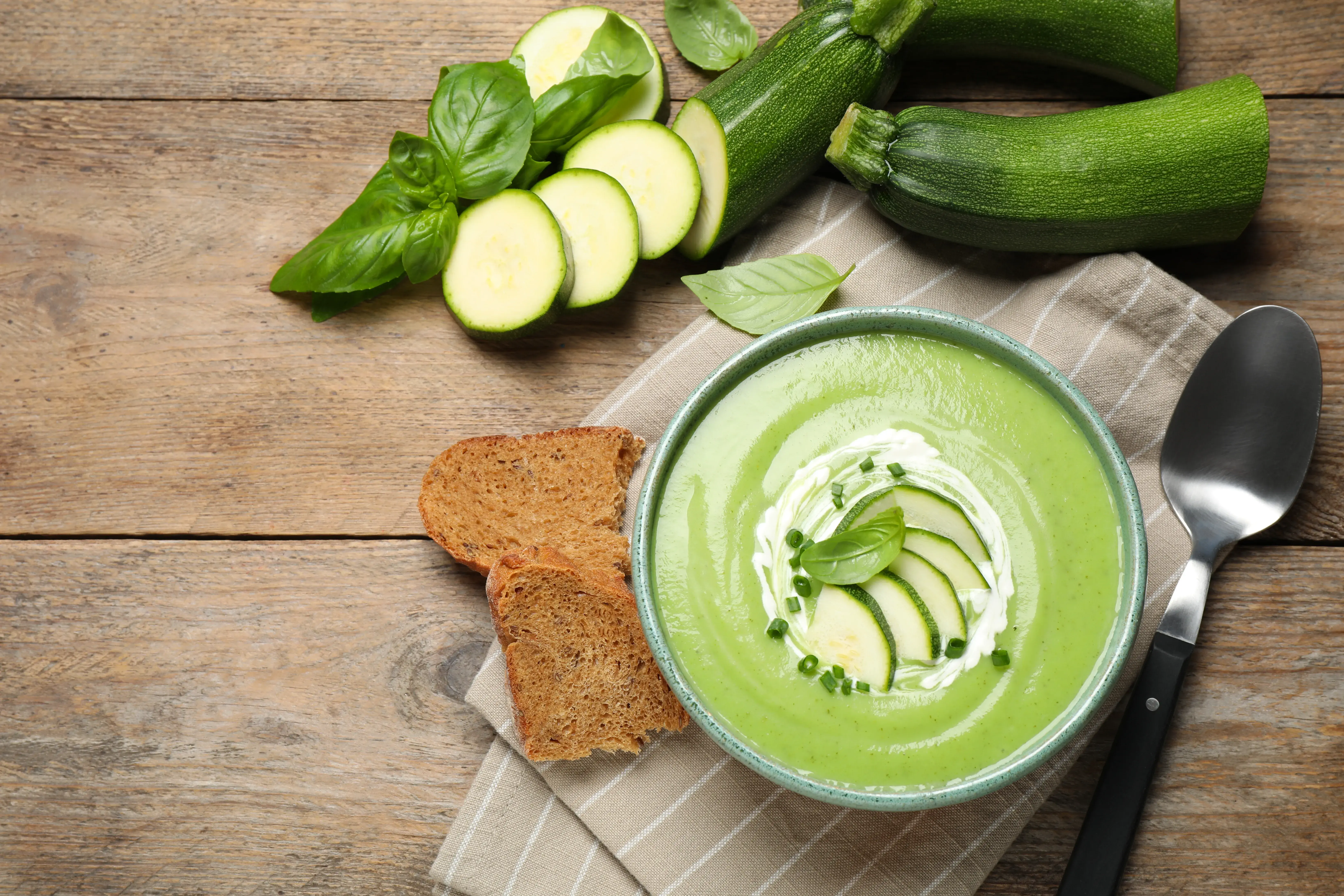 Cuketová polévka je dokonale přizpůsobivá – neutrální chuť cukety totiž skvěle podpoří bylinky, česnek i další zelenina, například rajčata, brambory, mrkev. A kromě cukety samotné využijete i její květy.