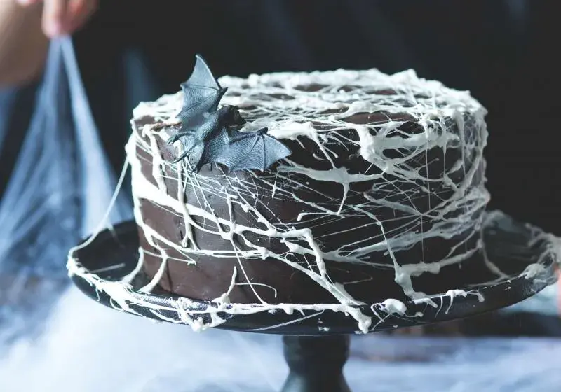 Naprosto efektní (a přesto velmi jednoduchý) je tento dort ze zakletého zámku. Základ tvoří tmavý korpus s čokoládovým krémem. Jeho kouzlo spočívá ve falešné jedlé pavučině, kterou vytvoříte z bílých marshmallows bonbonů. Stačí je nechat několik vteřin rozpustit v mikrovlnné troubě, pak do roztavené hmoty ponořit prsty, následně roztáhnout a pavučinový efekt je na světě. Dejte si pozor, ať bonbony nezahříváte příliš dlouho, jednak rychle zkaramelizují a mohli byste se také popálit.