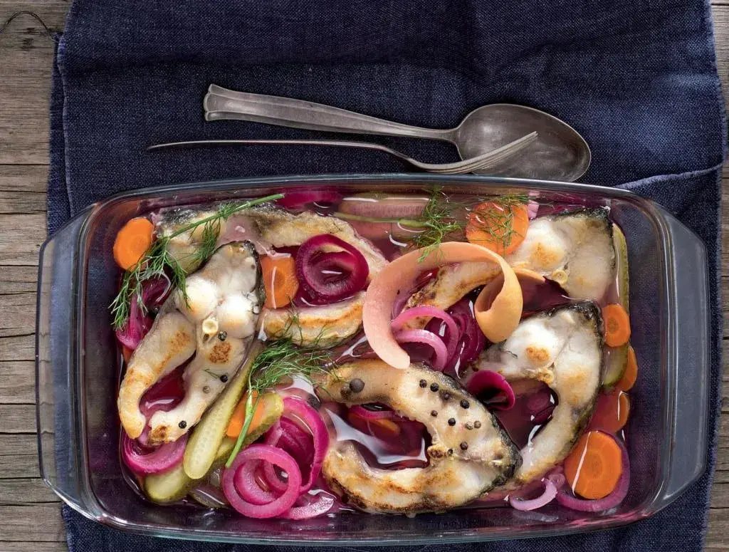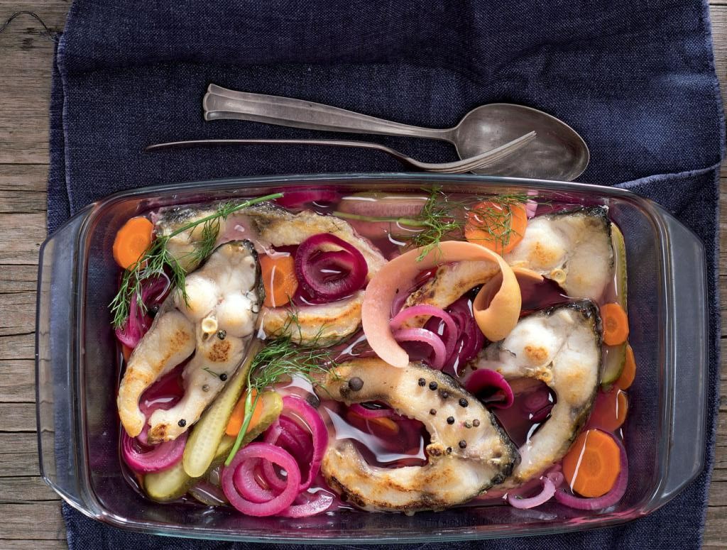 Kapra můžete naložit podobně jako utopence. Kapří podkovy je nejprve potřeba opéct na olivovém oleji, následně přemístit do zavařovací sklenice a zalít sladkokyselým lákem.